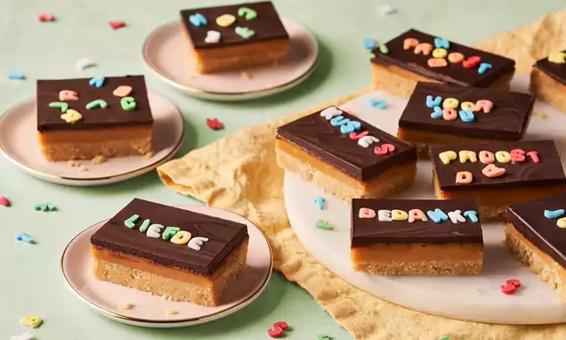 Shortbread heeft een brosse koekbodem, een tussenlaag met stevige karamel, met een heerlijke laag choco bovenop.