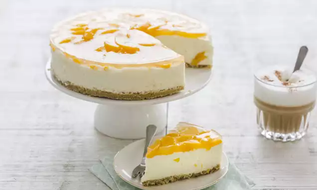 Maak de kwarktaart taart volgens de aanwijzingen op de verpakking: leg het bijgesloten vel bakpapier over de bodem van de springvorm. Plaats de rand hierop en sluit de springvorm.