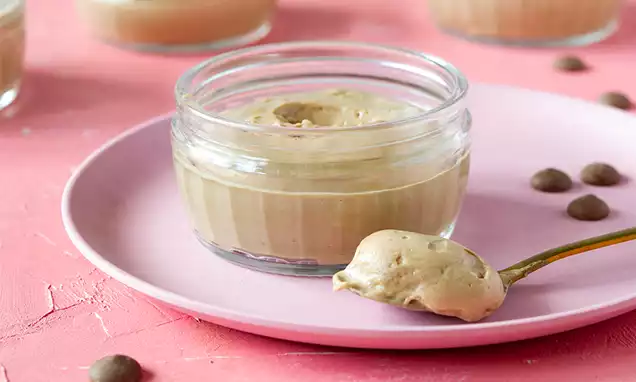 Garneer de chocolademousse voor het serveren met chocoladeschaafsel of een toefje slagroom.