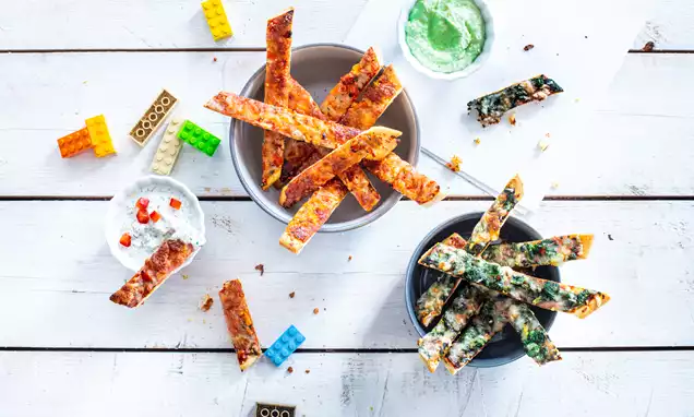 Plaats de bakplaat iets onder het midden van de oven en bak de ronde pizza in circa 18 minuten en de bakplaatpizza in 25 minuten gaar.
