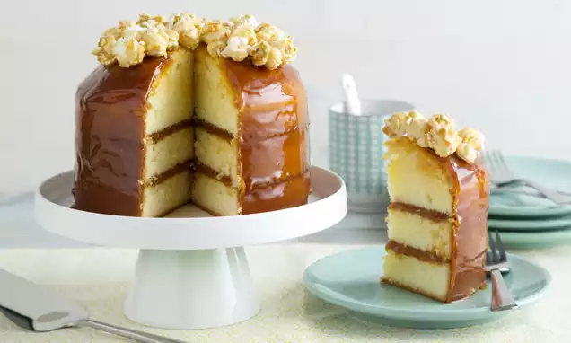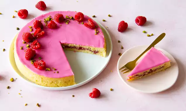 Laat de taart 10 minuten afkoelen, verwijder de taart uit de springvorm en draai de taart op z’n kop. Zo krijgt de taart een mooi vlakke bovenkant. Laat de taart volledig afkoelen.