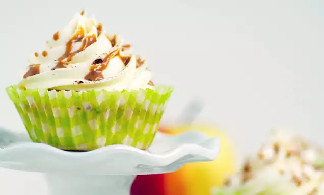 Doe de cupcakemix, de eieren en de melk, een eetlepel koekkruiden en de boter in een beslagkom en roer het geheel met de mixer op de laagste stand door elkaar.