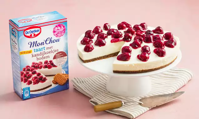 Schenk het kwarkmengsel over de bodem en laat de taart ten minste 2½ uuropstijven in de koelkast.