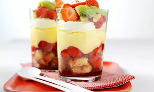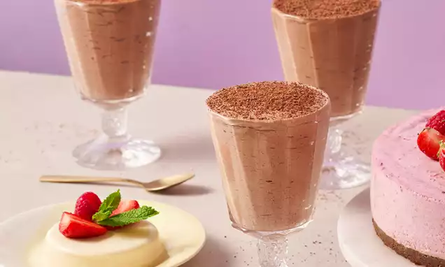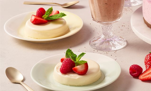 Zet voor 2 uur in de koelkast en serveer bijvoorbeeld met een mooie aardbeiensaus.