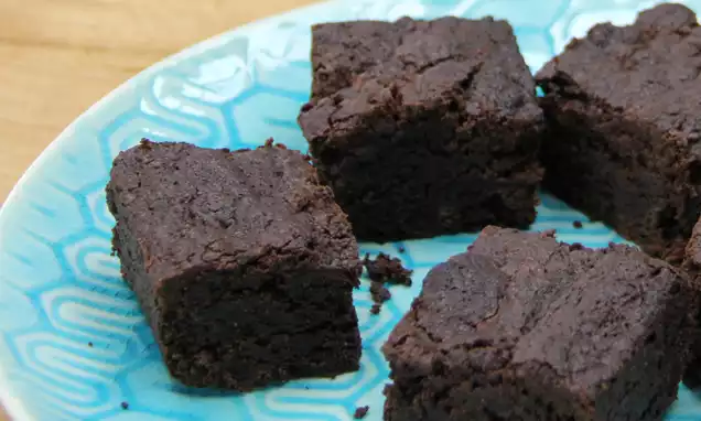 Klop de margarine romig in een kom, voeg de browniemix en het water toe.
