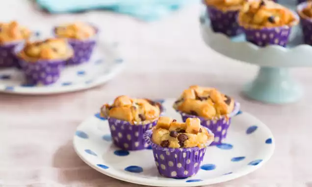 Plaats de bakplaat in het midden van de voorverwarmde oven en bak de chocolade muffins in ca. 19 minuten gaar. De muffins zijn gaar als je met je vinger licht op de chocolade muffin drukt en deze terugveert (let op: de decoratie is heet).
